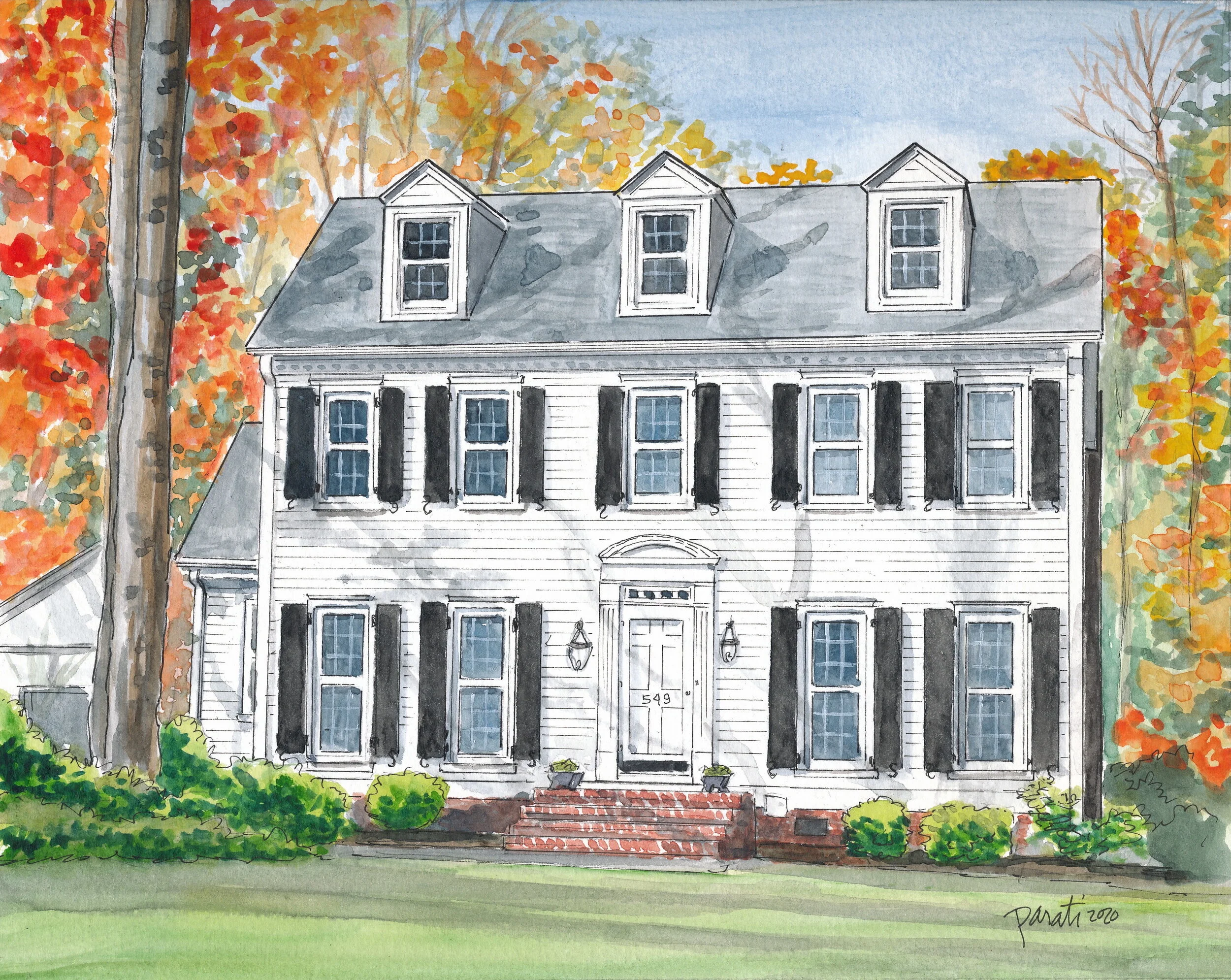 These are samples of my House/Pet Portraits. Each is a customized watercolor and ink painting. I can include a frame as well!